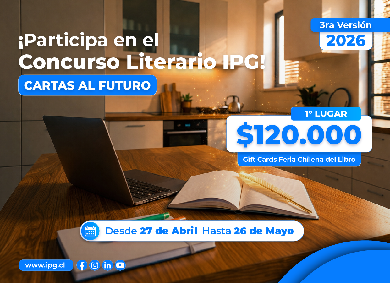 El Instituto Profesional IPG invita a todos sus estudiantes a participar en la tercera versión del Concurso Literario IPG 2026, una iniciativa orientada a promover la expresión escrita, la reflexión y la creatividad en torno a la experiencia estudiantil.