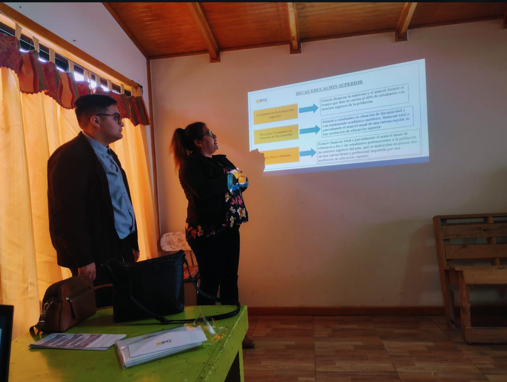 Concepción, 20 de noviembre de 2023.- En el marco de la asignatura “Metodología de Intervención Comunitaria”, los estudiantes de segundo año de la carrera de Técnico en Servicio Social en el Instituto Profesional IPG Sede Concepción, llevaron a cabo una significativa actividad de presentaciones socioeducativas. El objetivo principal fue informar a los vecinos de la Junta de Vecinos “El Teniente”, ubicada en el sector Yobilo I de la Comuna de Coronel, sobre distintos beneficios del estado, detallando sus principales características y las formas de acceder a ellos.