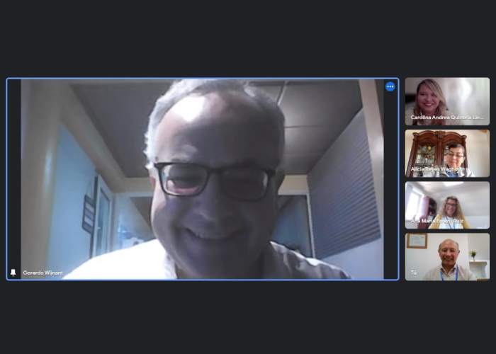 28 noviembre, La Unión. – En el contexto de la constante búsqueda de alianzas y apoyos con importantes centros de investigación y desarrollo de talla mundial, un equipo del Instituto Profesional IPG integrado por Alicia Reyes, Directora Nacional de la Escuela de Gestión, Negocios y Marítima; Carolina Quintela, Directora Nacional de Vinculación con el Medio; Ana María Errazu, Directora sede La Unión; y Nabor Carrillo, Jefe de Carrera de la Escuela de Gestión, Negocios y Marítima en la sede La Unión, se reunieron de forma remota con Gerardo Wijnant, Responsable de Impacto y Ecosistema, Oficina Pacífico Sur de la Banca Ética Latinoamericana.